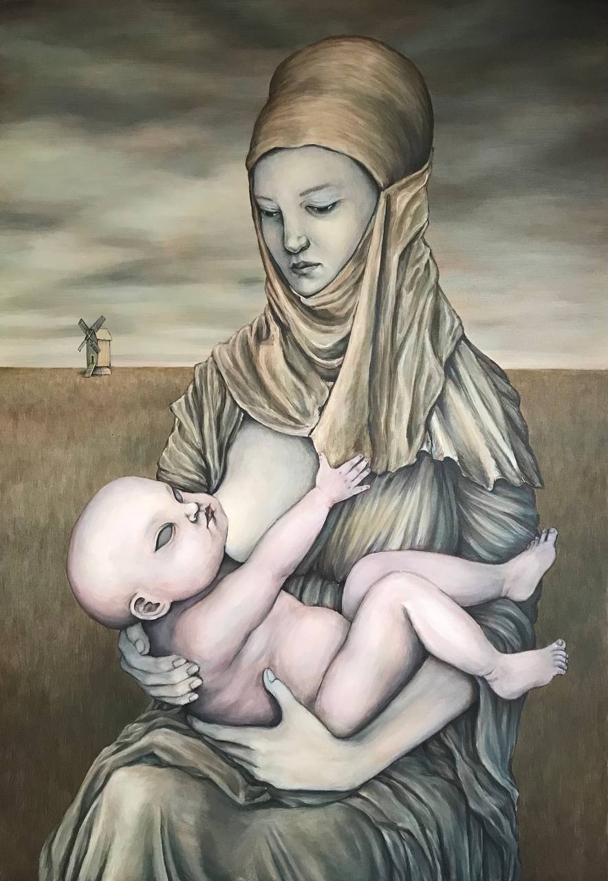 Ich male auf selbst grundierten Leinwänden oder Holztafeln.